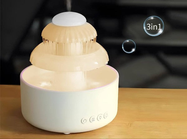 عيش جوّ المطر وأنت في أوضتك! فواحة سحابية 2×1 بتنزّل قطرات مية، تطلّع صوت مطر، وتنشر ريحة تهديك وتساعدك تنام… دي مش فواحة عادية، دي تجربة حسيّة كاملة! 🌈🛌