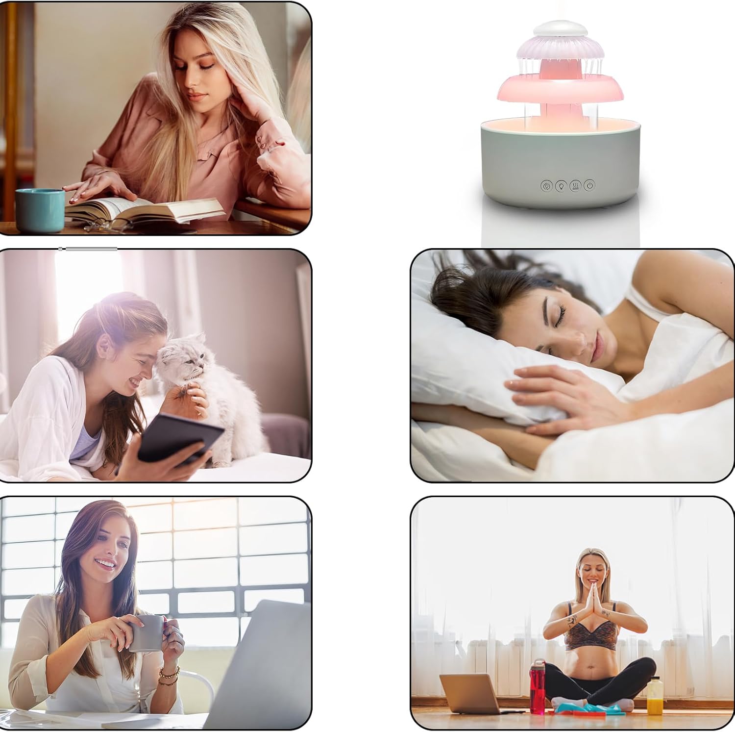 مش بس بترطّب الجو، لأ كمان بتعمل صوت مطر حقيقي مع قطرات بتنزل زي الواقع! هتحس إنك نايم على شباك في يوم شتا دافي